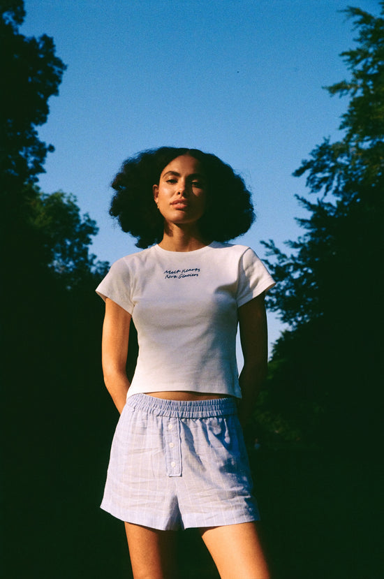 We partner with non-profit organisations to offset our impact on the planet, from slow-production practices, to carbon neutral shipping, to biodegradable mailer bags that dissolve in hot water. Most of all, we're committed to constantly improving the sustainability of our brand year after year.