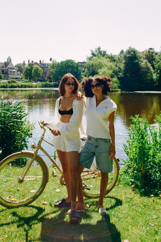 Whether en-route to the sun-soaked South of France, savoring après-ski in the Swiss Alps, unwinding after a casual tennis match, or simply cycling to the market on a misty Amsterdam spring morning for fresh flowers and pastries our garments embody effortless luxury, designed to elevate these cherished moments.