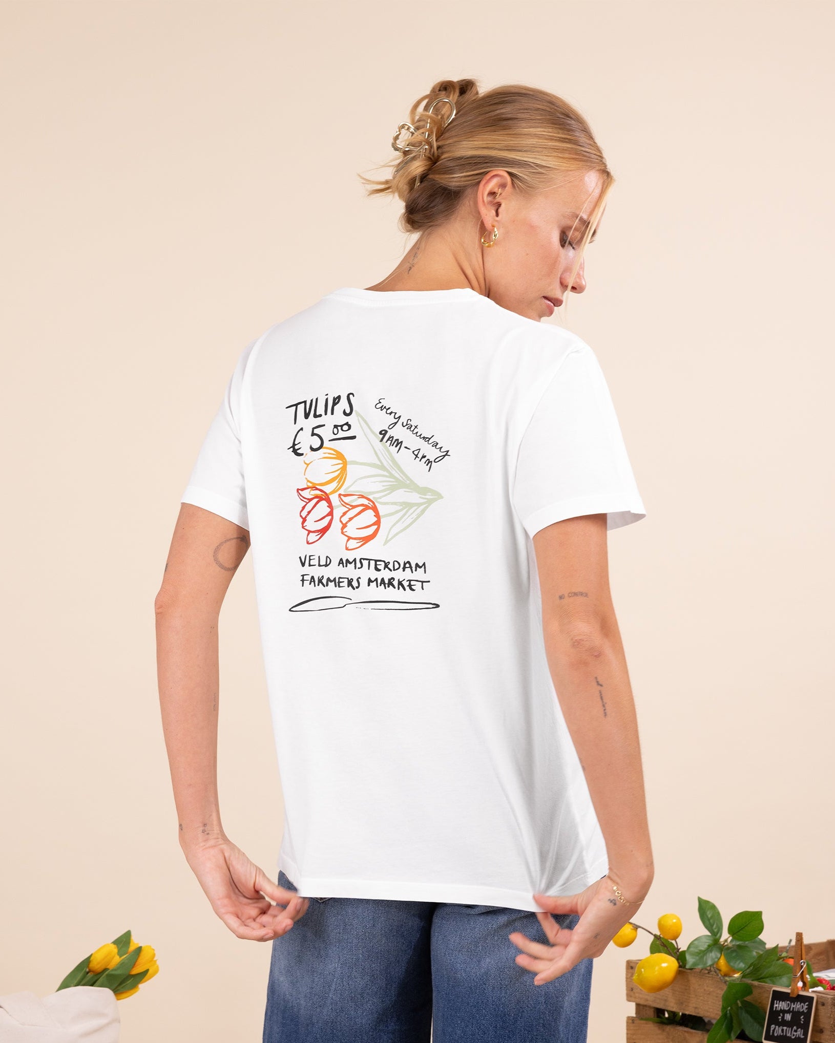 Find the perfect fit with the Griffith Crew Neck T-shirt, crafted from incredibly soft 160 gsm Organic Cotton that feels light yet structured for a clean, straight fit. Features custom graphic designs inspired by our favourite city ritual- Saturdays at Noordermarkt.