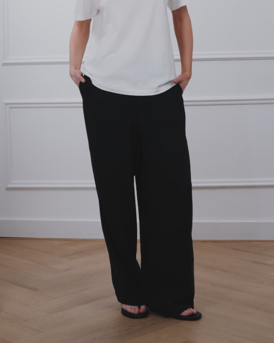 Introducing your new favourite Trouser. The Melrose Trouser features a cool and comfortable Tencel Lyocell fabric with a breezy loose fit and elastic waistband. Dress these up or down; they are sure to be a staple in your closet for seasons to come.