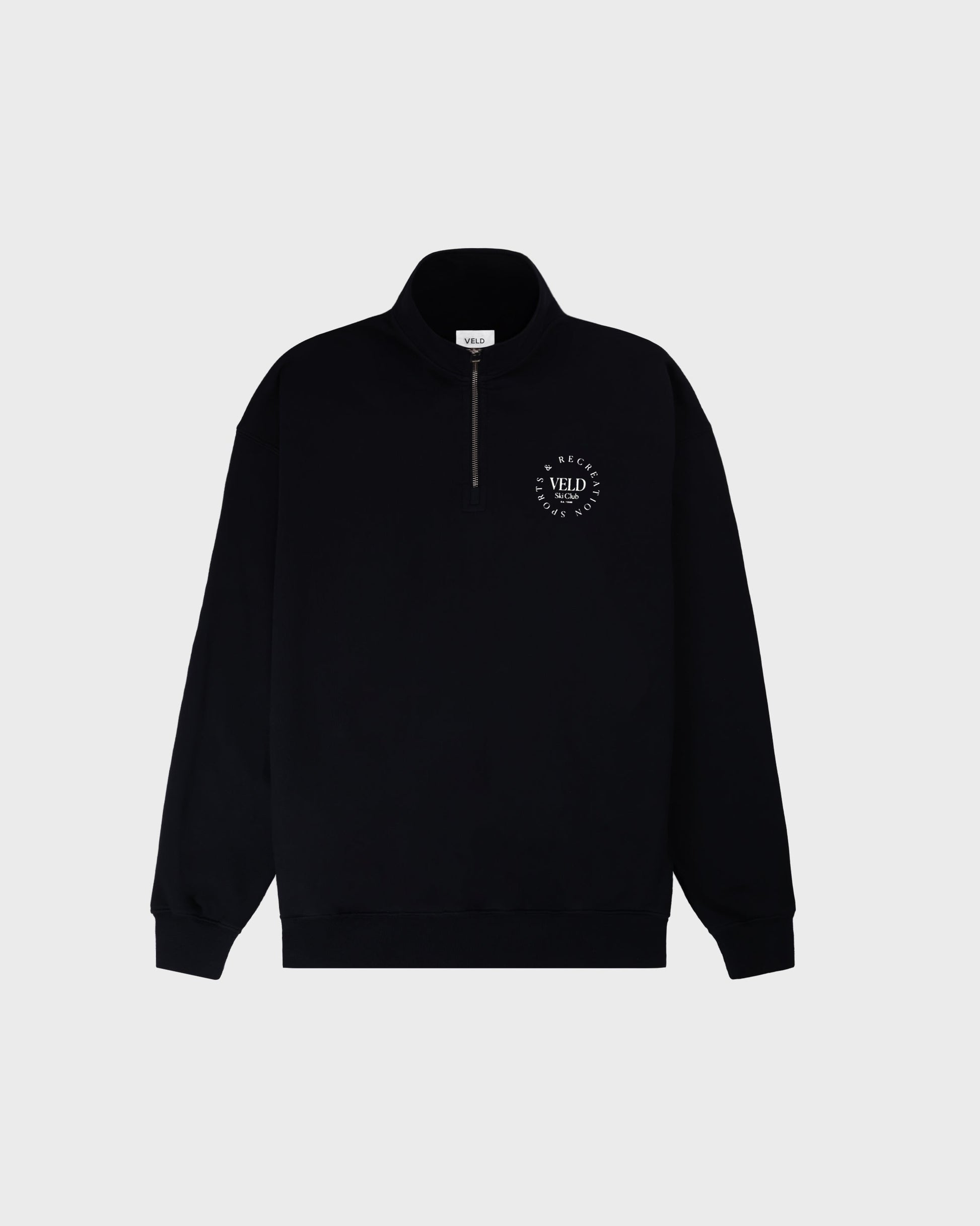 The Runyon Full Length Quarter-Zip Sweatshirt is an effortless piece that can be styled up or down. The 415 gsm Organic Cotton paired with a spacious fit and cozy pockets, provide comfort that also looks amazing. Whether you're hitting the slopes or meeting up for drinks, we've got you covered. Features our Veld Sports & Recreation crest screenprinted on the chest.